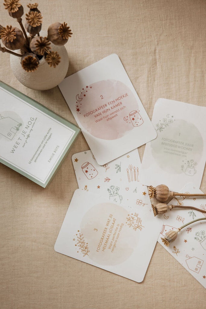 Het kaartendeck met 52 fotomomenten om jouw gezinsleven vast te leggen. Het kaartendeck bevat 52 inspirerende uitnodigingen om jullie gezinsleven vast te leggen zoals het echt is. Geen perfecte plaatjes. Gelukkig niet!